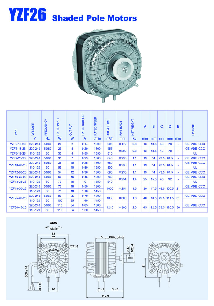 | Product Name: | YZF26 Shaded Pole Motors | Product categories: | Shaded pole Motors |